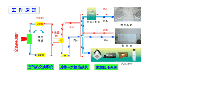空氣源熱泵從原理上說, 生活中常見的冰箱也是一種熱泵, 夏天冰箱里面是4-7度, 外面是30-35度, 當(dāng)我們把一盤熱菜放進(jìn)冰箱時,菜里面的熱量散發(fā)到冰箱里面的冷空氣中,冰箱里面的機(jī)器開始工作,把里面冷空氣里面的熱量搬到外面的空氣里面來,這樣不斷的工作, 冰箱里面才能維持一個恒定的溫度,當(dāng)我們用手摸冰箱的側(cè)面或后面時,會有點微微的熱, 這就是冰箱在進(jìn)行熱量的搬運(yùn)!
